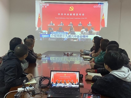11月12日上午10時(shí),投資集團(tuán)黨支部組織全體黨員第一時(shí)間觀看中共中央新聞發(fā)布會(huì)介紹黨的十九屆六中全會(huì)精神,學(xué)習(xí)領(lǐng)會(huì)黨的十九屆六中全會(huì)精神。